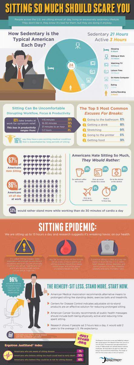 请查看下面的信息图表并让我们知道:您认为自己坐得太多吗?您是如何尝试改变日常生活中的这种情况的?