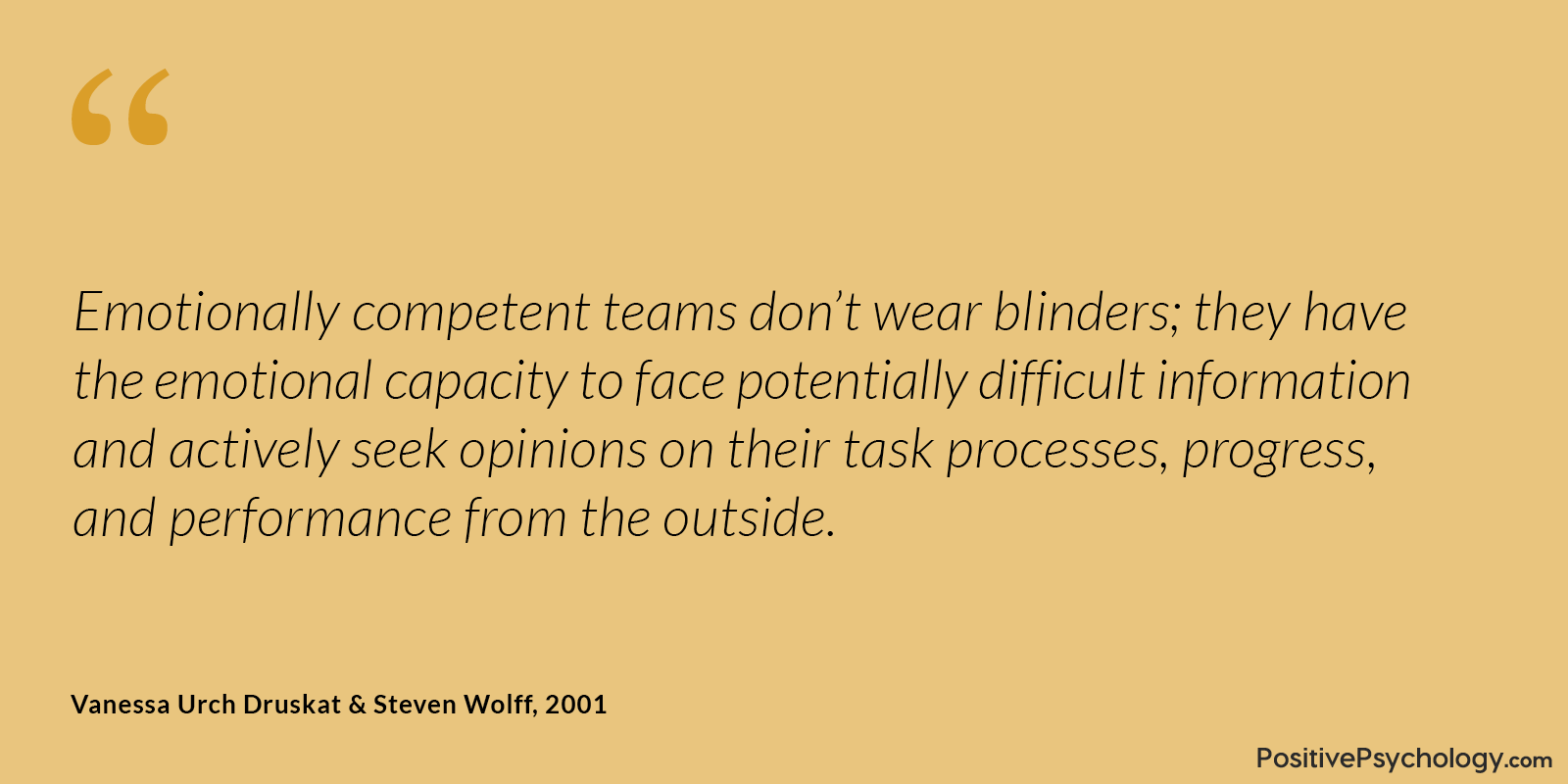 情绪胜任的团队不会盲目行事;他们具备面对潜在困难信息的情绪能力,并主动寻求外部意见,以了解其任务过程、进展和绩效。