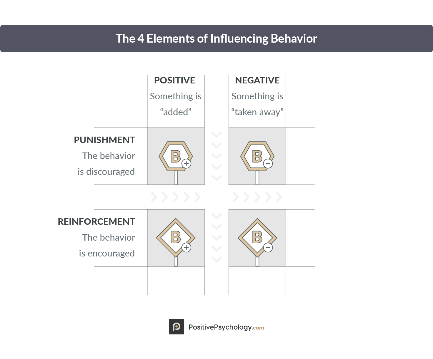 - 你是通过添加某些东西来影响行为(积极),还是通过移除某些东西来影响行为(消极)。